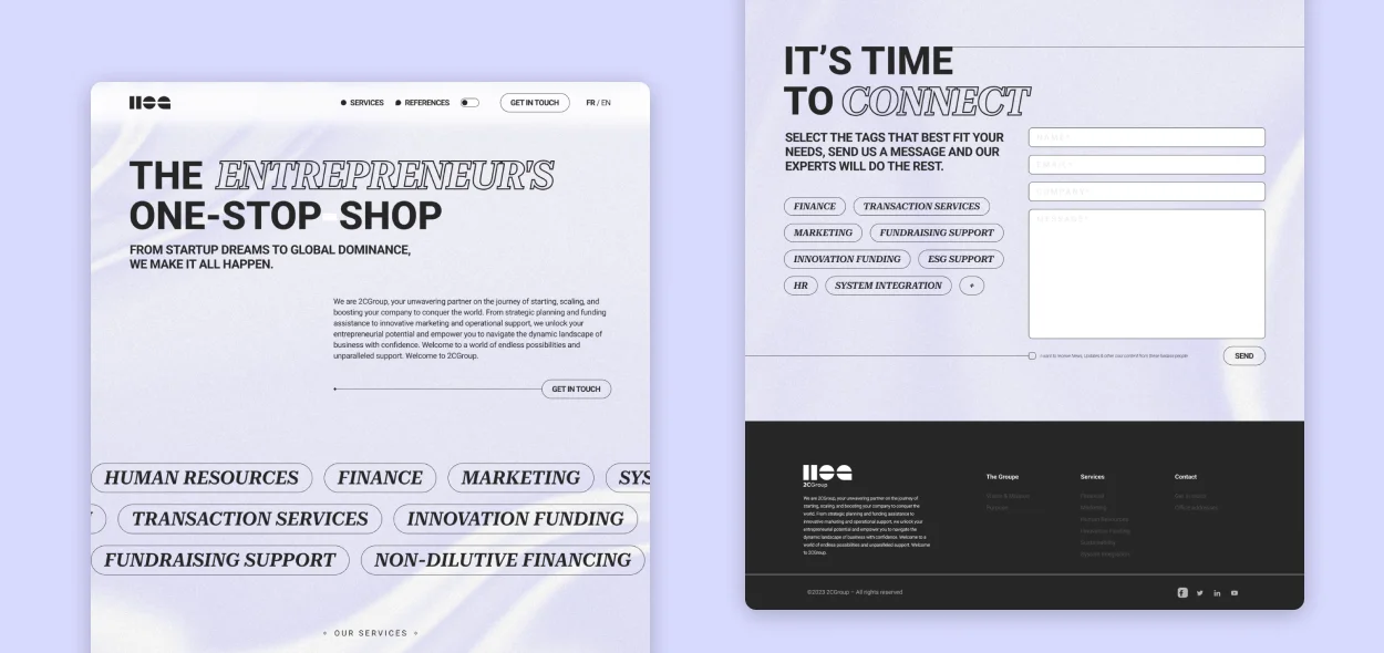 How do you unify six distinct pillars of expertise under one cohesive roof? 2CGroup is the entrepreneur’s "one-stop shop," but their visual ecosystem needed to reflect the synergy between their brands. We defined a comprehensive identity that connects services ranging from finance and HR to RSE and innovation. Discover how we built a brand strategy and digital experience that supports clients from seed stage to corporate powerhouse.