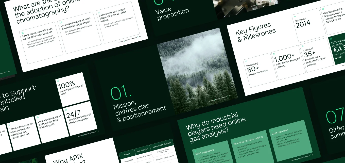 How do you visualize the invisible precision of gas analysis? Apix Analytics is revolutionizing quality control in gas pipelines through miniaturization, proving that you don't need massive infrastructure to achieve precise results. We transformed their brand image to showcase this technological breakthrough, highlighting their unique position in a booming industrial sector.