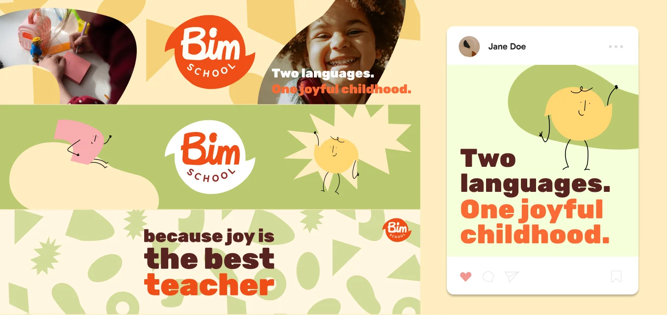 A unified educational path — We moved away from a fragmented image by uniting the four existing schools under a single, powerful identity. The new "BIM" brand reflects a constructive, forward-looking approach to education. The visual language is playful yet structured, designed to appeal to parents looking for academic excellence and to children eager to explore.